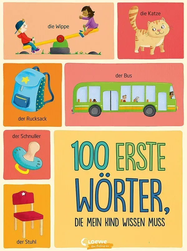 In diesem Bildwörterbuch sind die ersten Wörter und Begriffe für Kinder ab 12 Monaten enthalten. Ob Fahrzeuge, Tiere, Spielsachen oder Essen – hier können kleine Entdecker*innen schon ganz viel selbst erkennen und so spielerisch die Welt um sich herum kennen- und benennen lernen. Perfekt für gemeinsame Vorlesestunden.