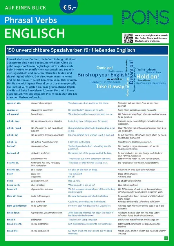 Der praktische Spickzettel: Brush up your English – ohne Phrasal Verbs geht nichts im Englischen!