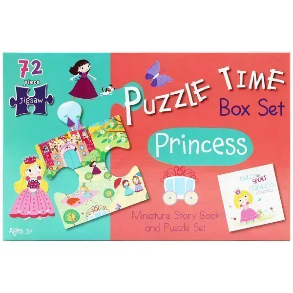 Enjoy plenty of royal fun with this 72 piece jigsaw and soft cover book set. Join Polly the spoilt Princess and piece together the colourful palace scene jigsaw.