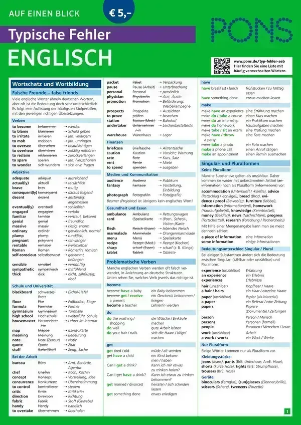 Alle typischen Fehler und die wichtigsten Ausnahmen, Unregelmäßigkeiten und Zweifelsfälle auf einen Blick zum schnellen Nachschlagen und Lernen.
